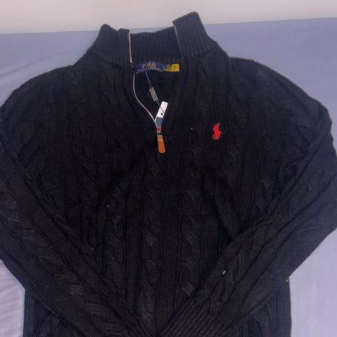 Min sønn selger en fin mørkeblå Ralph Lauren genser. Genseren er kjøpt for rundt to år siden men er ikke mye brukt. Selger denne genseren fordi den er for liten for han. Genseren har ingen synlige bruksmerker og er ikke noe slitt☺️