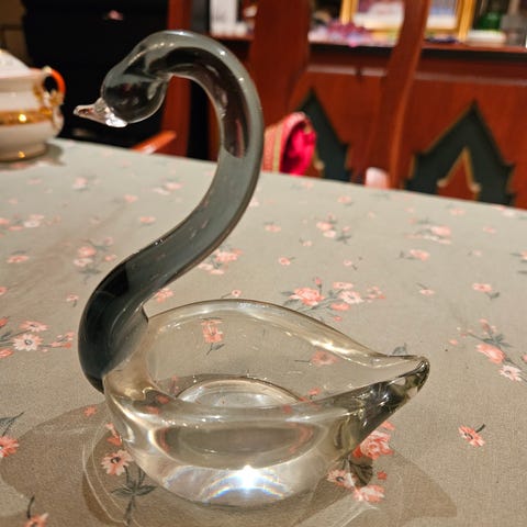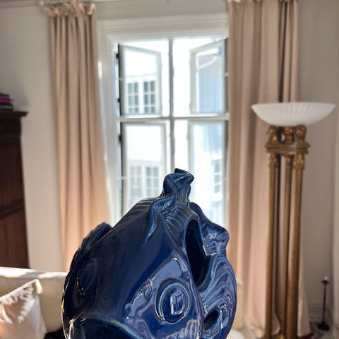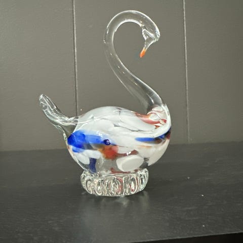 Selger en stor og dekorativ keramikk-svane i dyp blå glasur med platina-detaljer. Laget i Spania, merket under (“Decorado con metales preciosos”). God stand, ingen skader.