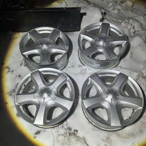 Ene felgen har noe fastbrent bremsestøv på seg, men antar dette kan fjernes av en med pågangsmot.