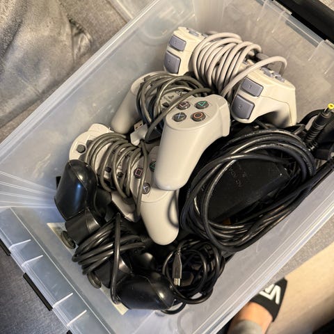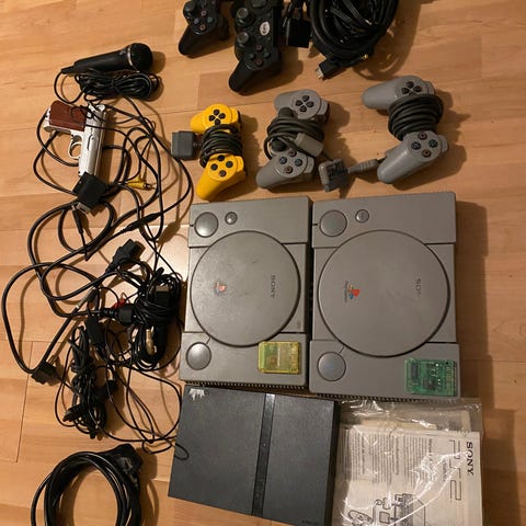 Playstation 2 spillkonsoll med kontroll og spill