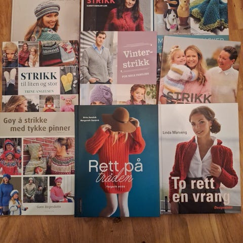 Diverse strikkebøker med mønstre og oppskrifter