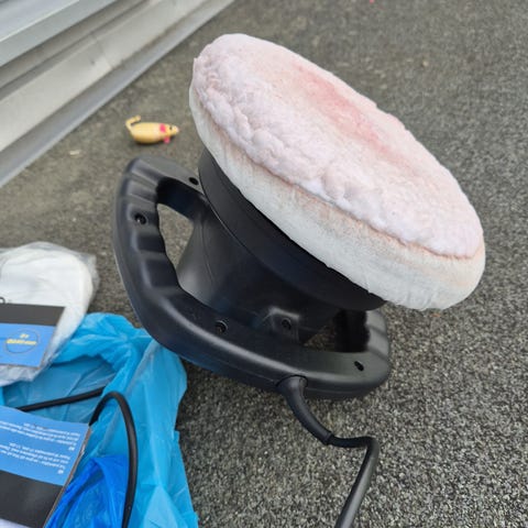En lett brukt Waxmaster 900 poleringsmaskin. Som ny. Inkluderer to poleringsputer i forskjellige materialer. Perfekt for individuell bruk på biler eller andre overflater.