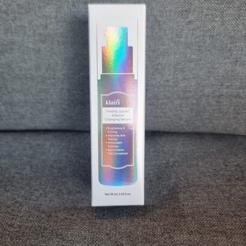 Klairs Freshly Juiced Vitamin Charging Serum er en hudpleieprodukt som kommer i en 30 ml emballasje. Serumet har egenskaper som lysner huden, forbedrer hudtekstur, har en antioksidantformel og bidrar til å redusere hudirritasjon.