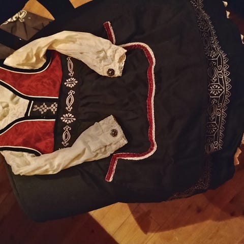 Ingen skader, men bruksflekker på ermene.