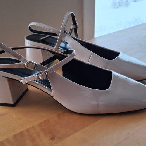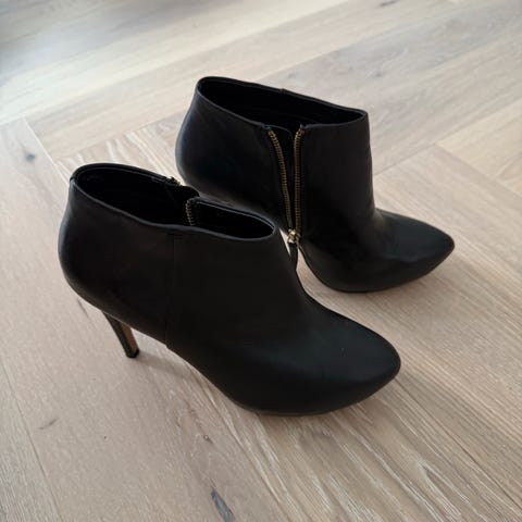 Mango hæler i størrelse 41, fargen svart. Skoene har en spiss tupp og høy hæl, se bilder for nærmere mål.