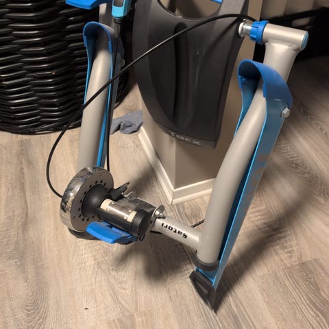 Tacx Satori treningsrulle i blå farge. Egnet for innendørs syklingstrening. Kommer med matte og støtte for sykkel. Passer til sykler for å trene hjemme.