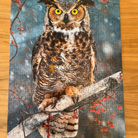 Photomosaics puslespill med 1000 biter. Puslespillet består av små bilder av kattedyr som tilsammen danner ett stort bilde av en tiger.