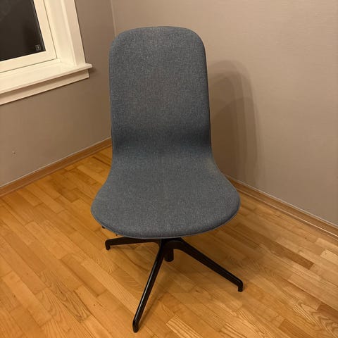 Selger en stilig IKEA ODGER svingstol i antrasittfarge. Stolen er i god stand og har blitt brukt forsiktig i et hjemmekontormiljø. Den tilbyr komfortable sitteplasser og et moderne design som vil passe inn i ethvert rom.
