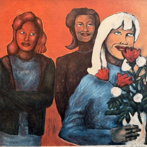 Motiv av kopp og skål i blå og oransje farger. Inkludert ramme med mål ca. 25cm x 25 cm.kan sendes, porto kr 100,-