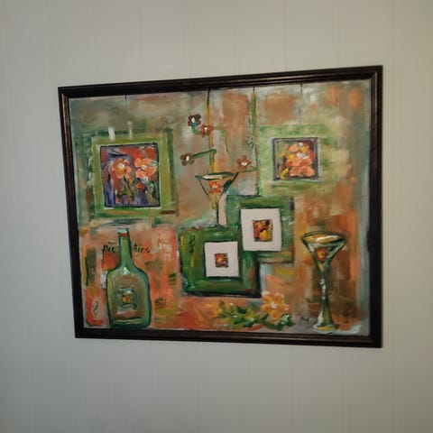 Fantastiske moderne maleri med flotte farge nyanse , grå, blå, hvit, svart. Signert.