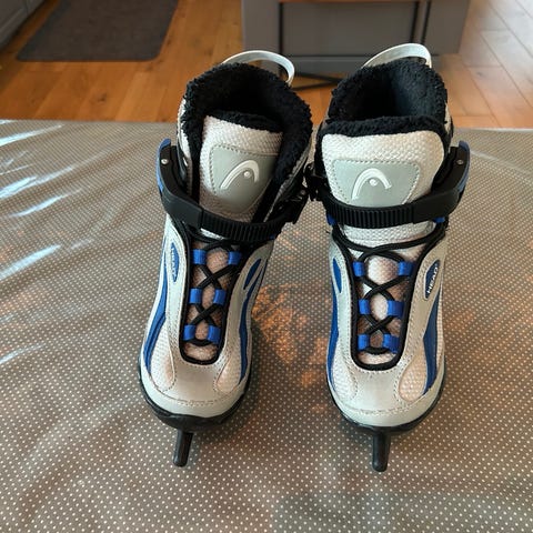 Head barneskøyter i størrelse 31-36 (variabel). Tror de er litt små i størrelse. 36 burde passet her. Kjøpt på Obs 2024, brukt 2-3 ganger samme vinter. Podeføttene vokste fortere enn ventet, så vi må opp ett hakk. Selges derfor. Selges for 250 kr, må hentes.