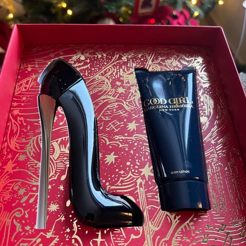 Selger en elegant Good Girl-gaveeske fra Carolina Herrera. Settet inneholder den ikoniske Good Girl-parfymen i stiletthæl-flaske samt matchende body lotion. En feminin, sensuell og sofistikert duft – perfekt som gave eller til egen bruk.
