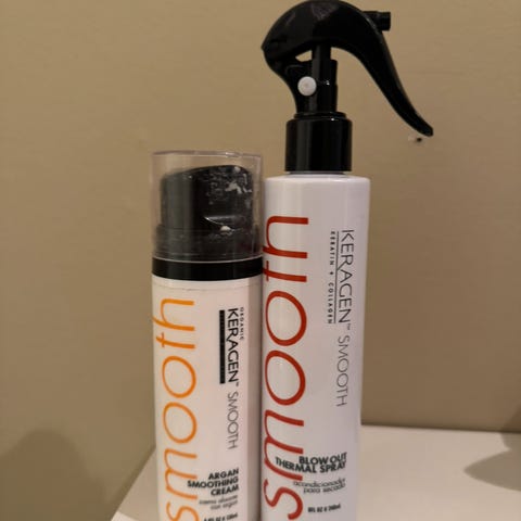 Selger to varmebeskyttende hårprodukter som beskytter håret ved bruk av føner, rettetang og krølltang. Begge er lite brukt og i god stand.