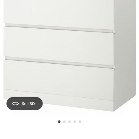 Malm kommode kjøpt i 2020 selges billig pga noen «kakk» på ene langsiden som står inntil veggen. Ellers ingen bruksmerker slik jeg kan se. Må hentes snarlig.