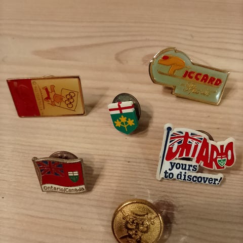 K-Bank pin/nål med logo, utformet i gull og svart farge med motiv av Oslo Rådhus.