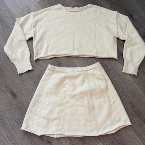 Kult Chanelaktig sett fra Zara i tweedstoff. Toppen er i small og skjørtet i large.