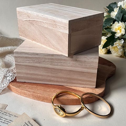 Den største boksen er godt egnet til oppbevaring av kort (spillkort e.l.) og har to hull i bunnen som gjør det enkelt å få kortene ut. Fine både til praktisk oppbevaring og som dekor 🌿 Smykkene følger ikke med. Se bilder for mål.