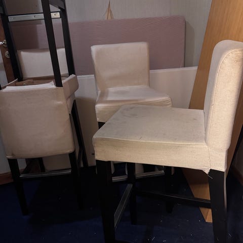 6 stk beige spisestuestoler med høy rygg. Kjøpt november 2021.