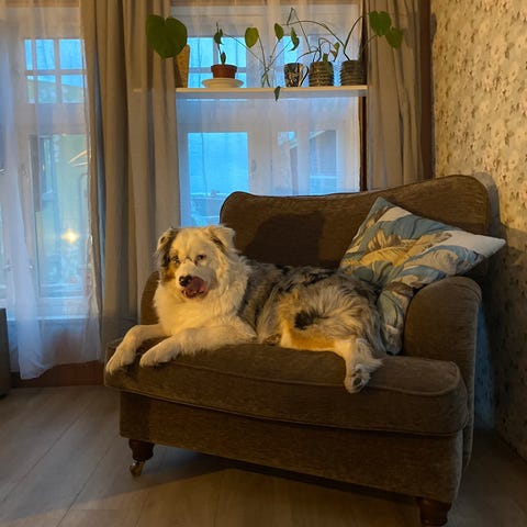 Hennes eneste minusside er at hun girer seg noe opp i møtesituasjoner på tur, mot andre hunder.