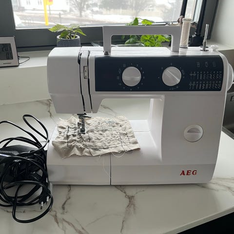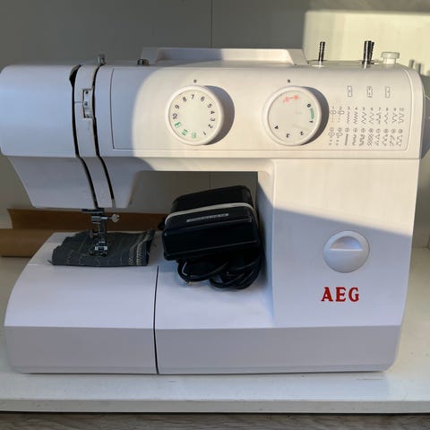 AEG 10K ubrukt symaskin. Tatt ut av esken men står fortsatt i isoporen. Liten og nett. Passer for feks nybegynnere.