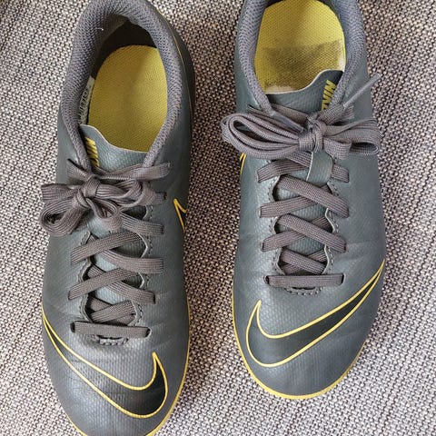 Selger unna Nike fotballsko i str 32, de har bruksmerker (svart pga kunstgress), men ellers ingen hull eller andre skader. Selges for 100 kr, frakt kommer i tillegg.