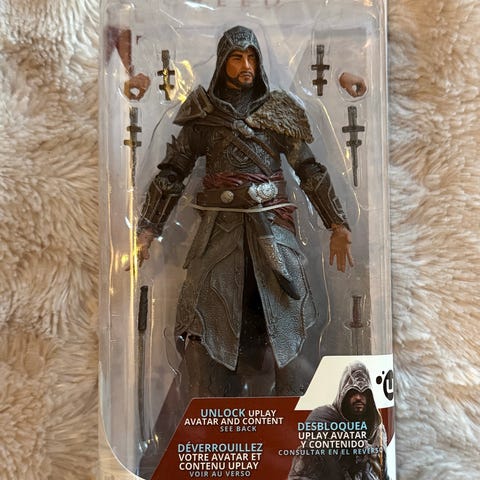 Assassin's Creed Edward Kenway og Connor actionfigurer i original emballasje. Figurene er basert på karakterer fra Assassin's Creed-spillserien og leveres med tilbehør. Passer for samlere og fans av serien.