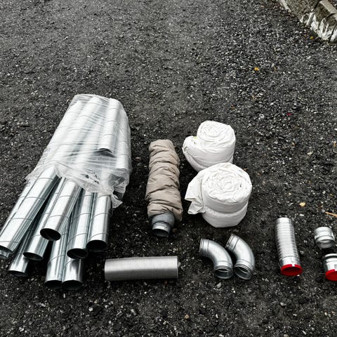 Parti med ventilasjonsdeler av profesjonell kvalitet, hovedsakelig Swegon.