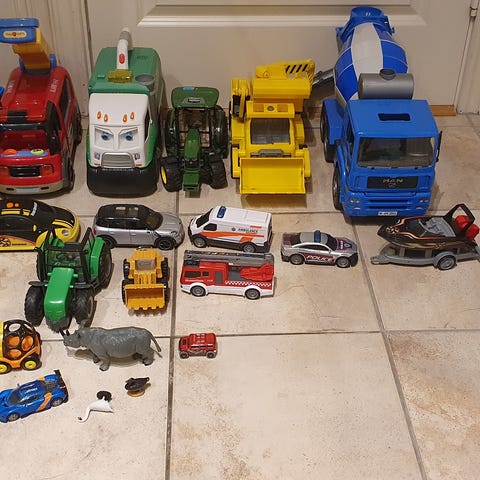 Vintage pakke med biler, utrykningskjøretøyer. Hel og fin med små merker på emballasjen etter tiden. Hentes på Sinsen eller sendes mot porto.