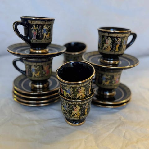 Vakkert gresk kaffesett håndlaget i 24K gull – Koboltblått