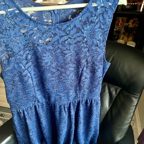 Brukt 2 ganger. Fargen er kongeblå. Vanskelig å få frem fargen på bilder, men nydelig farge.