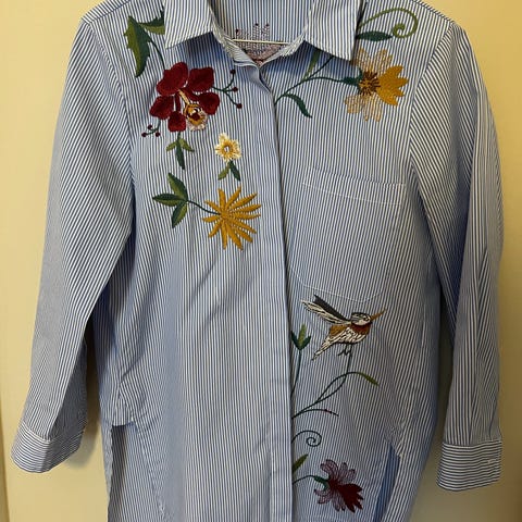 Flott jakke i lys, lys grå ( nesten hvit). Lett og varm.