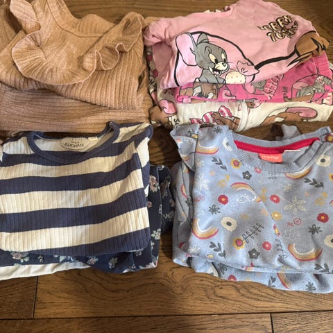 Klespakke 90-104 ... mye fint og mye greit til barnehagen. Noe lite brukt og noe litt mer. Bruksmerker kan forekomme. ( blandt anna parkdressen , masse bruk igjen sevom den har en del flekker.) Mer enn på bildene da jeg holder på å rydde ut av skapet