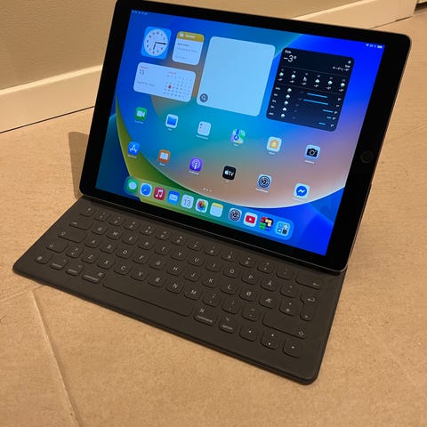 Apple iPad Pro 12.9-tommers (4. generasjon) med 128 GB lagringskapasitet og Wi-Fi-tilkobling. Inkluderer et tastaturdeksel. Skjermstørrelse på 12.9 tommer, egnet for ulike bruksområder som arbeid, underholdning og kreativt arbeid.
