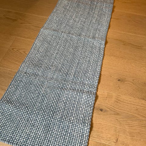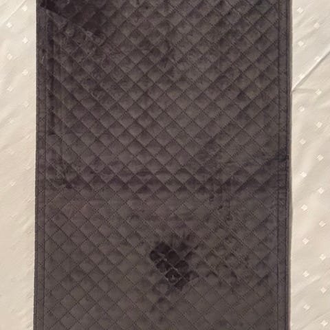 Pent og lite brukt løper i velour. Den er 100 % polyester. Løperen er sydd i rutete mønster.