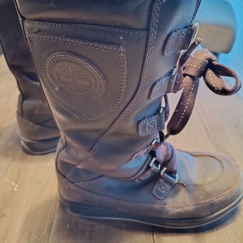 Pent brukte, mørkeblå vinterstøvler i skinn. Høy kvalitet, veldig behagelige.