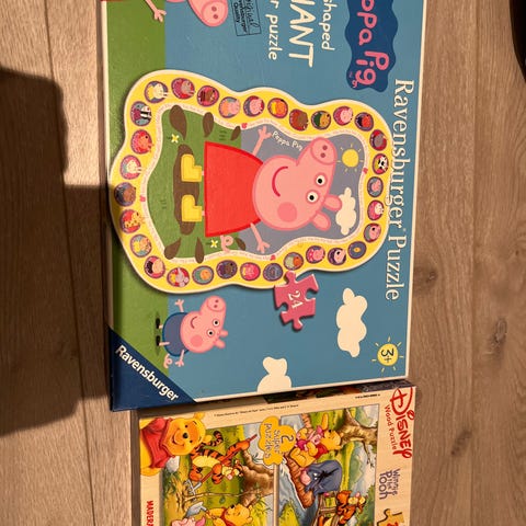 2 stk puslespill i tre med Peppa Gris og Ole Brum.