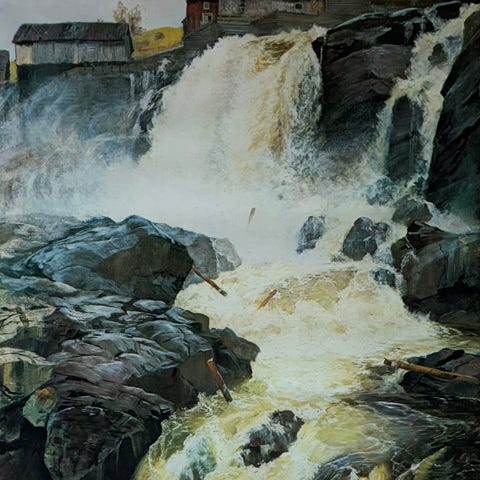 Motivet er trykket med høy kvalitet og har beholdt sine dype, varme fargetoner. Den store bjørken, speilingen i vannet og det gylne lyset gir bildet en rolig, nesten meditativ karakter, typisk for Fearnleys romantiske landskapsstil. Dette er et bilde som fungerer like godt i en moderne stue som i en mer klassisk innredning.