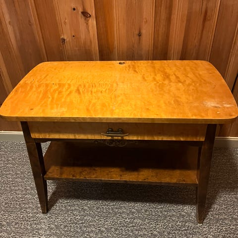 Lite bord som trenger et strøk maling, eller bare ha den som et rustikt bord/benk. Mål står på bildene.