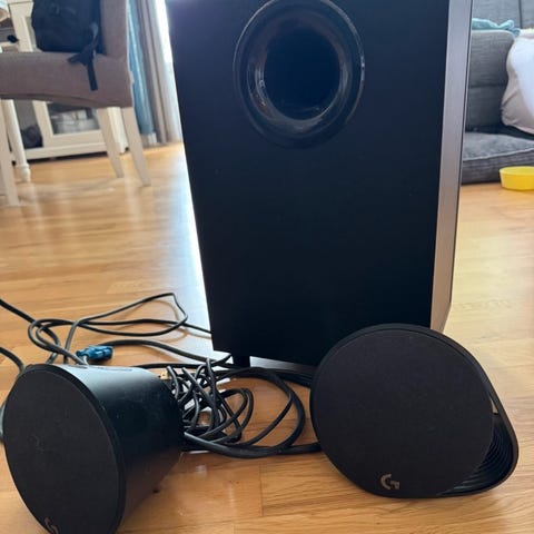 Selger Logitech G560 gaming-høyttalere i god stand. Fungerer som de skal, kraftig og klar lyd. RGB-belysningen synkroniseres med spill, musikk og skjerm via LIGHTSYNC, noe som gir en veldig bra gaming-opplevelse.