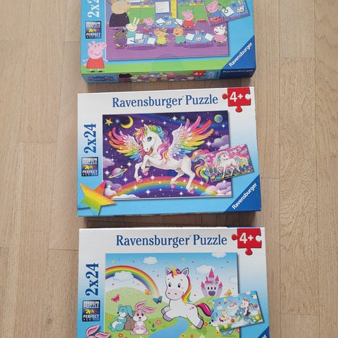 Ravensburger puslespill med enhjørninger og kaniner 2x24 biter