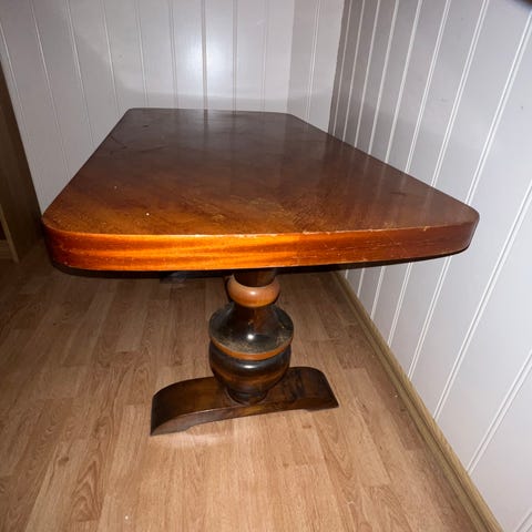 Veldig fint stuebord/salongbord søker ny eier. Topplaten trenger litt kjærlighet - et lite puss og teakolje bør holde.