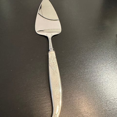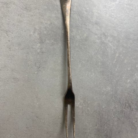 2 gamle koselig barneskjeer med litt bitemerker som har tilhørt Solveig. Solveig ble en kløpper til å strikke selbuvotter. Den med geit, Lengde 16 cm. Den andre lengde 17.5 cm. Begge 830 sølv.