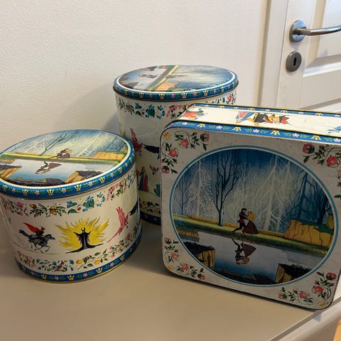 Vintage kakeboks Walt Disney. Sannsynligvis fra 50-60 tallet illustrasjon Tornerose.