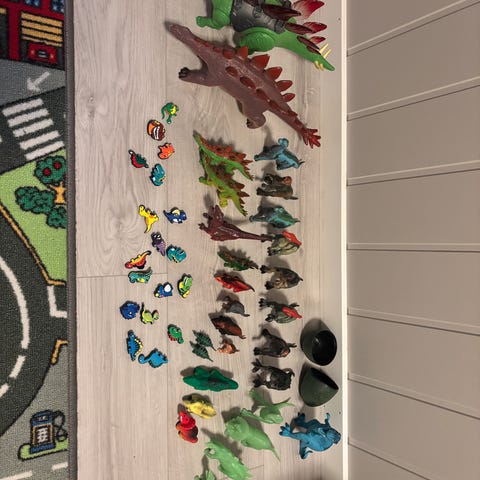 -Bil med dinosaurer og lyd (manglet én dinosaur på bildet, men nå er den gjenforent med gjengen sin).