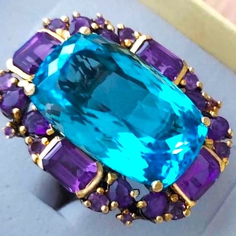 RÅLEKKER RING MED STOR BLÅ TOPAS