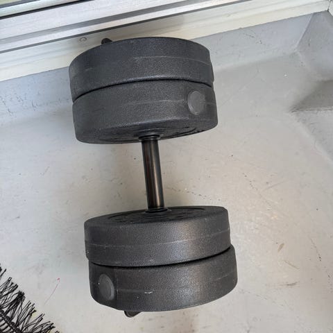 Den er tykk og beskytter godt mot hardt gulv.