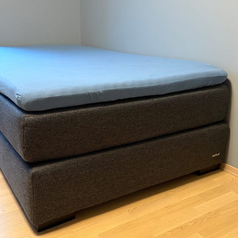 Bellus dobbeltseng i fin stand selges med overmadrass. Trenger en rens, men ellers i veldig fin stand.