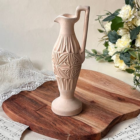 Flott vintage keramikkvase fra Kypros med vakker floral dekor. Signert på bunnen. Fin som pynt alene eller med tørkede blomster. Passer godt til cottagecore, bohemsk og rustikk stil. Se bilder for mål. 🌻