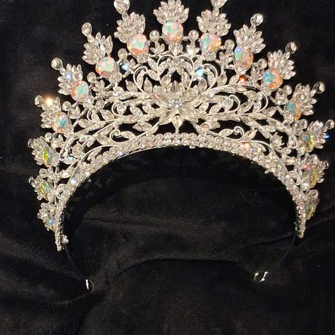 Tiara for dame med blå og sølvfargede detaljer. Passer til bruk ved formelle anledninger eller som tilbehør til kostymer. Helt nytt og ikke brukt