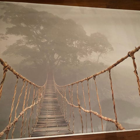 Stort bilde fra IKEA i str 200x140 cm. Naturmotiv veggbilde med skog og sollys.